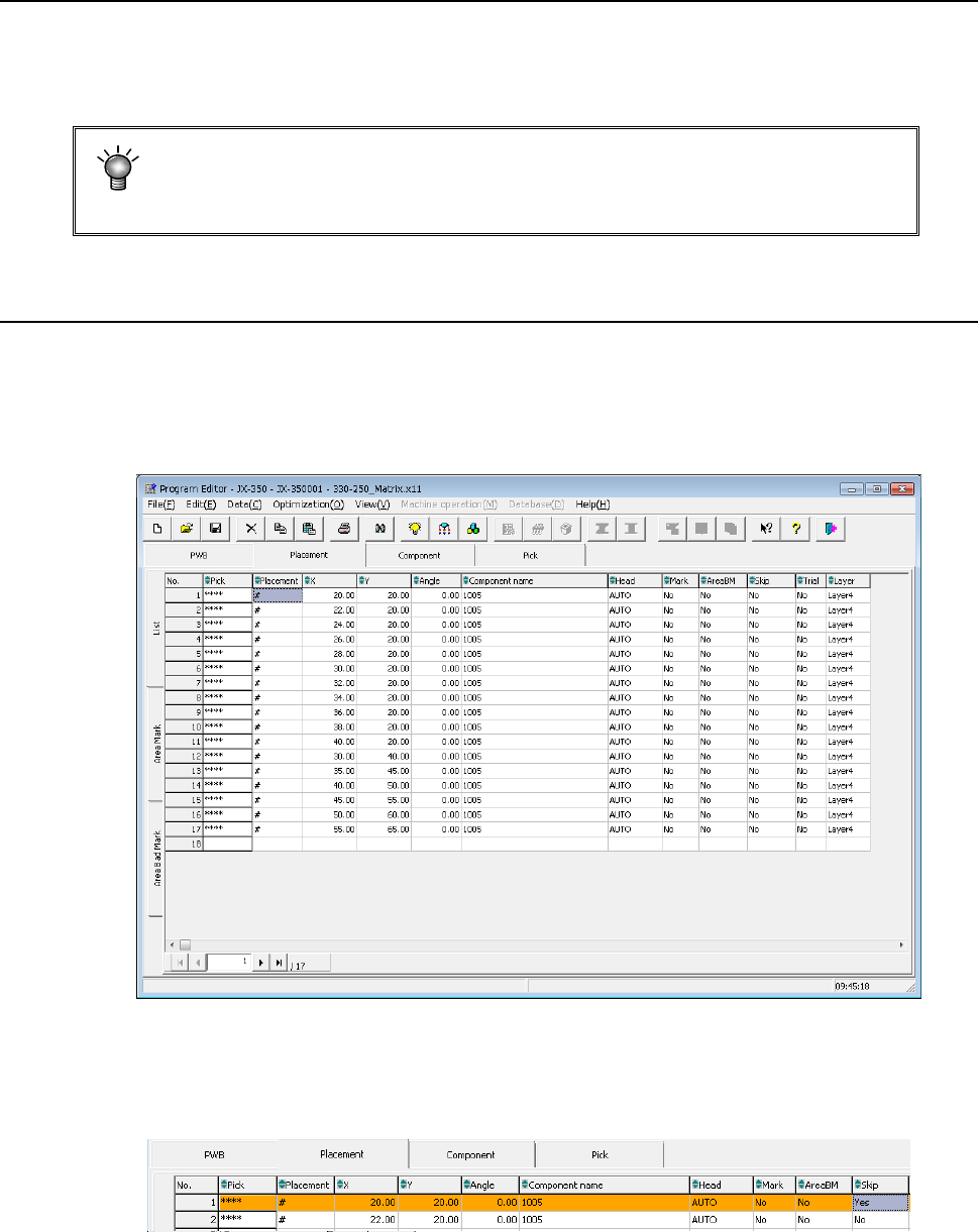 completely, the “Placement” data screen for creating Placement data (the following figure
