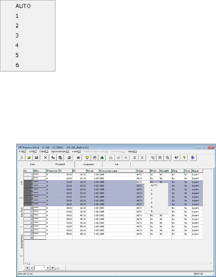 To select a head, press the Edit key (<F2> key of the keyboard) or the right button of