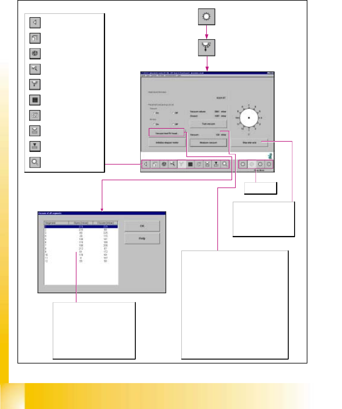 Tests the vacuum for the nozzle currently set up in the