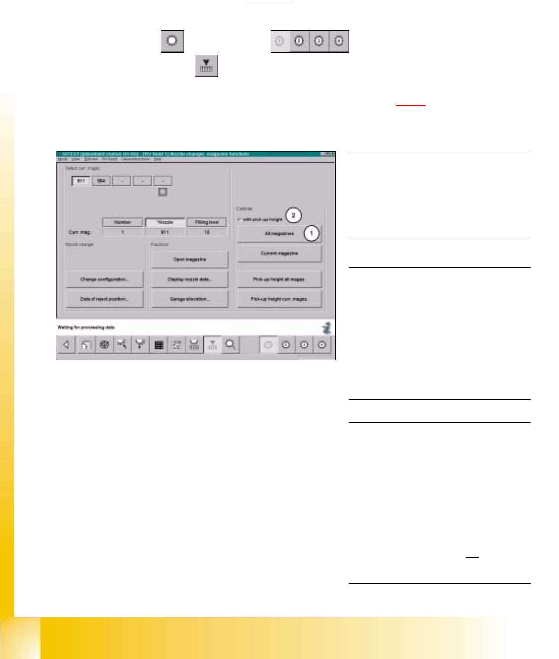 "C&P Head nozzle changer" ==> "All magazines (1)" (with pick up height (2)).