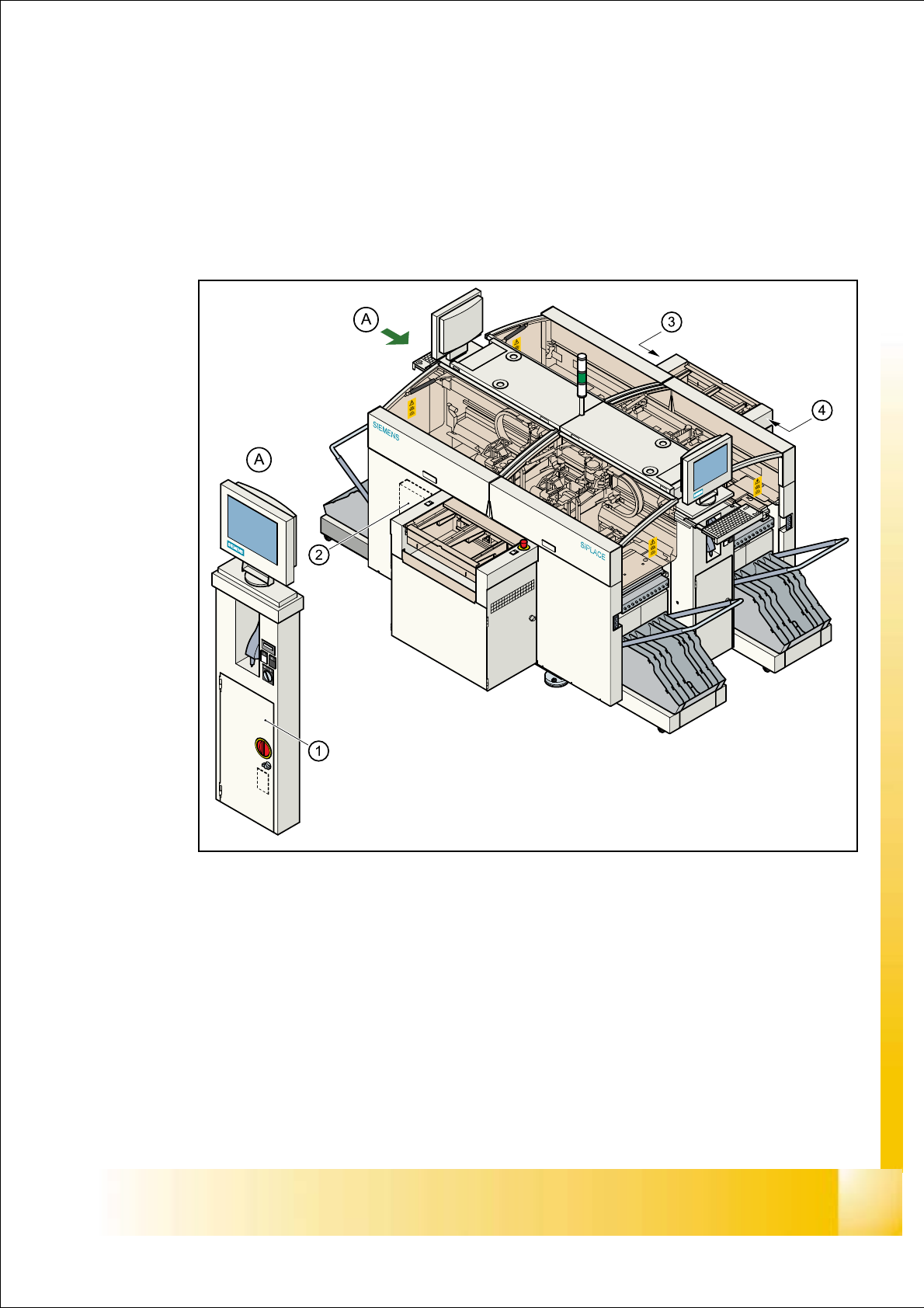 The power supply unit is located in the left-hand middle section of the placement system. A lock-