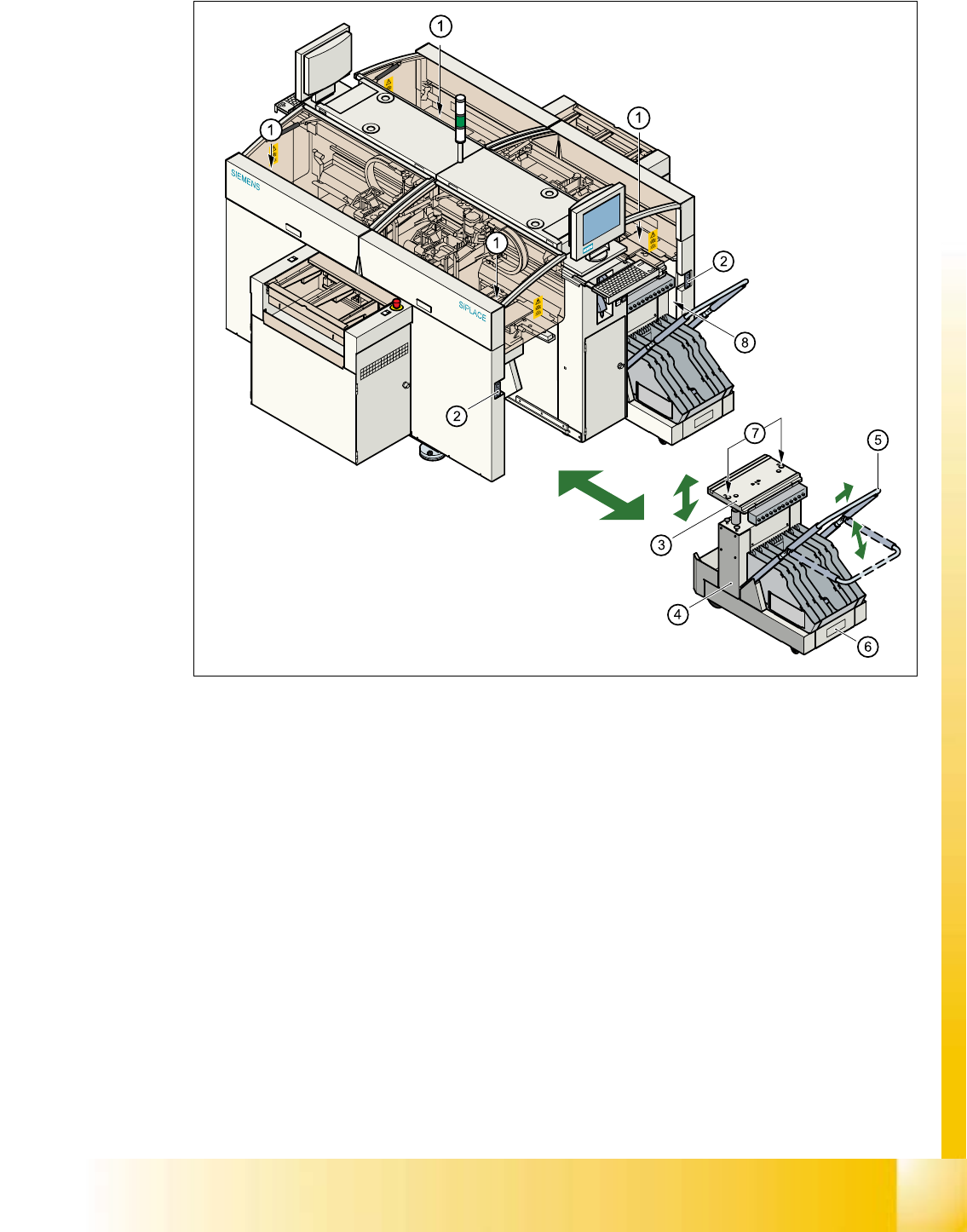 à Carefully push the component changeover table into the placement system.