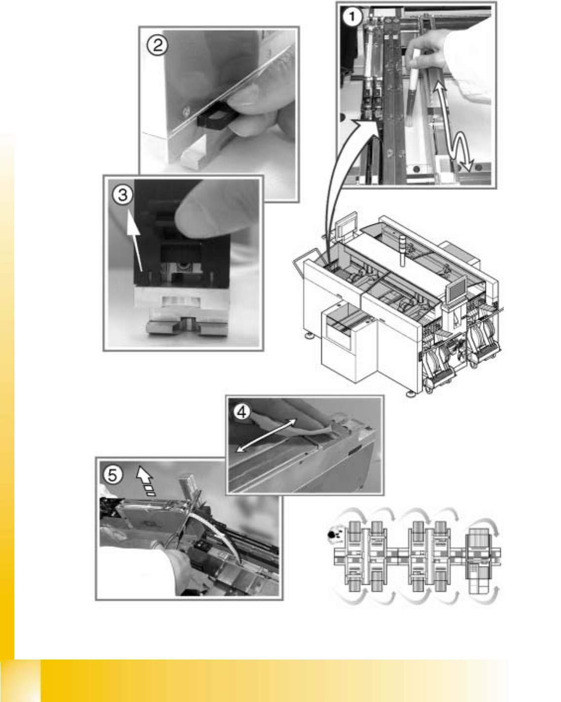 : Unplug the 8mm feeders and lift them off the component table.