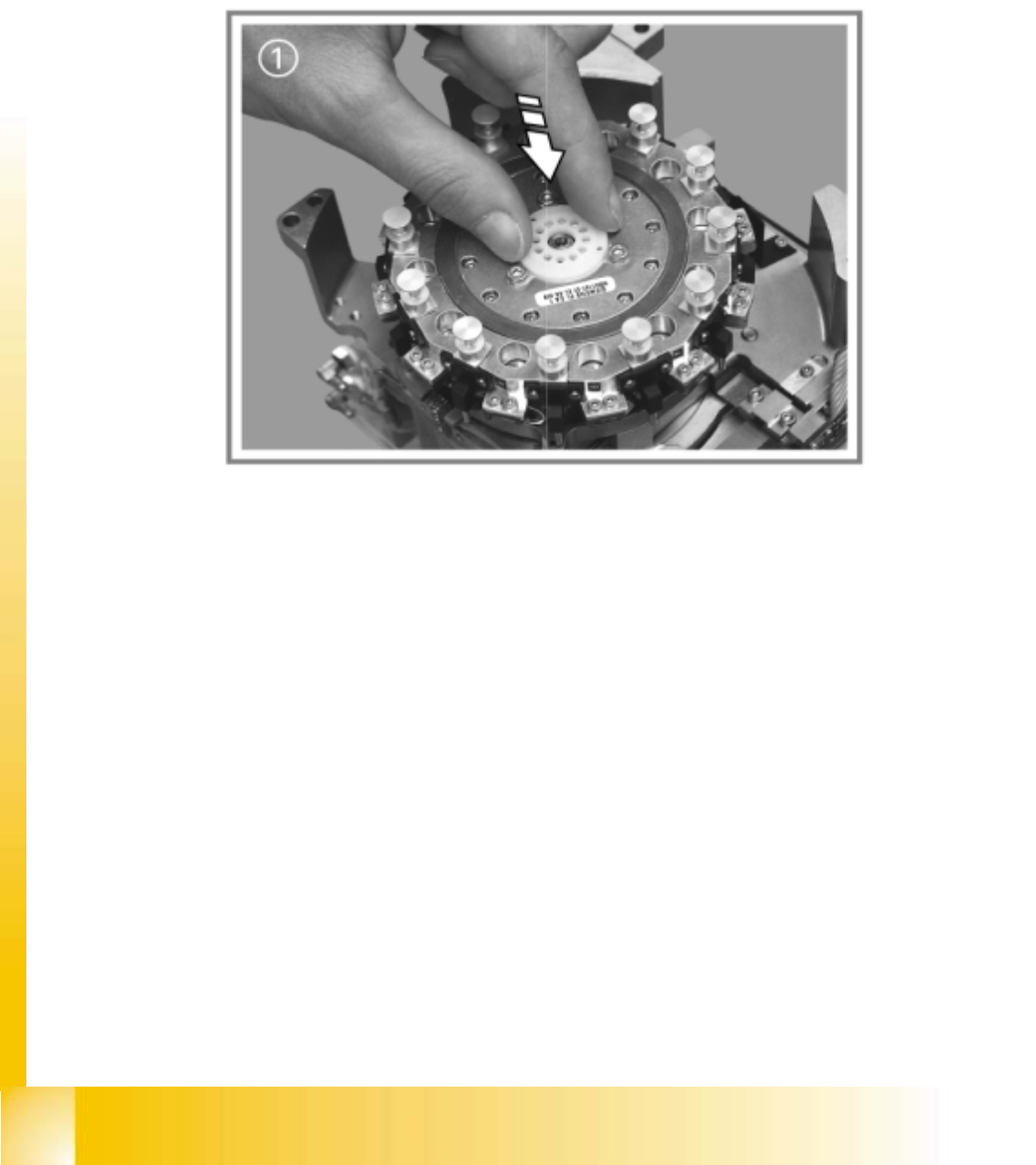 S tud ent Guid e HS-50 A dvanced I 0 6/2002 E dition 12 Pr eventive Maintenance 53 V alve a ctuators a W ipe the three valve actuators cle an using a dry , lint-free cloth. : At t he same time c lean the disk and the gap…