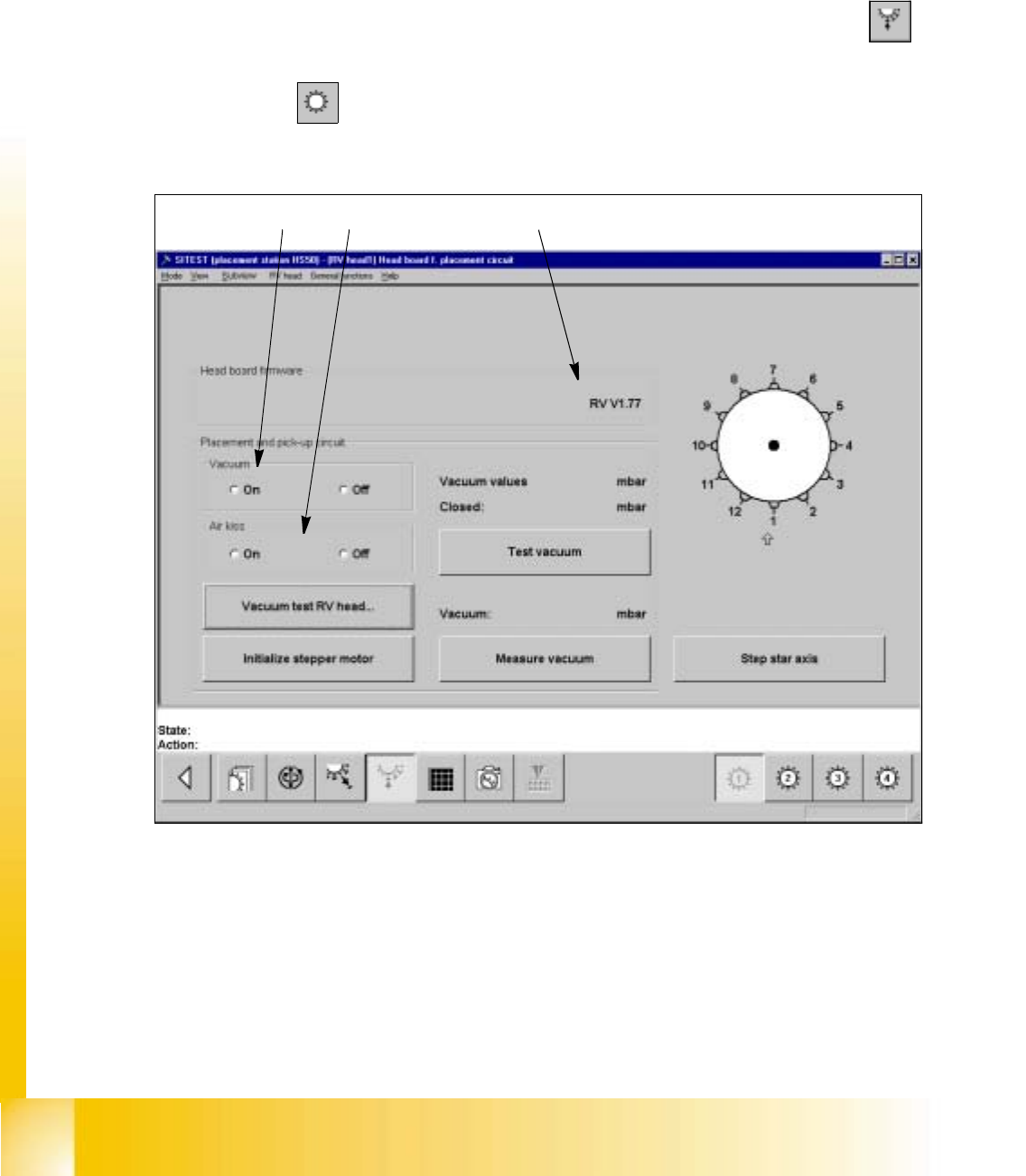 – To measure the current vacuum values in the placement and pick-up circuit, click on the