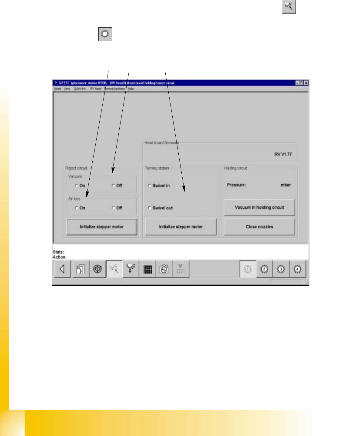 – If you wish to test the head functions in the holding and reject circuits, click on the icon