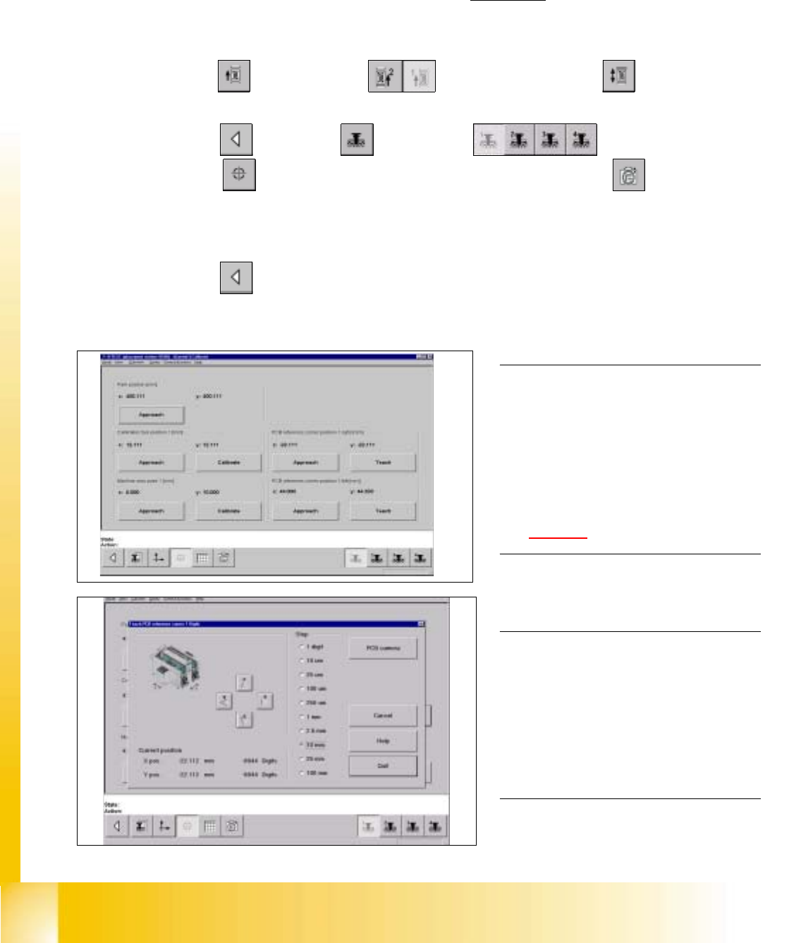 "Calibrate position" ==> "Teach (field 1, right hand side)" ==> "PCB camera" .