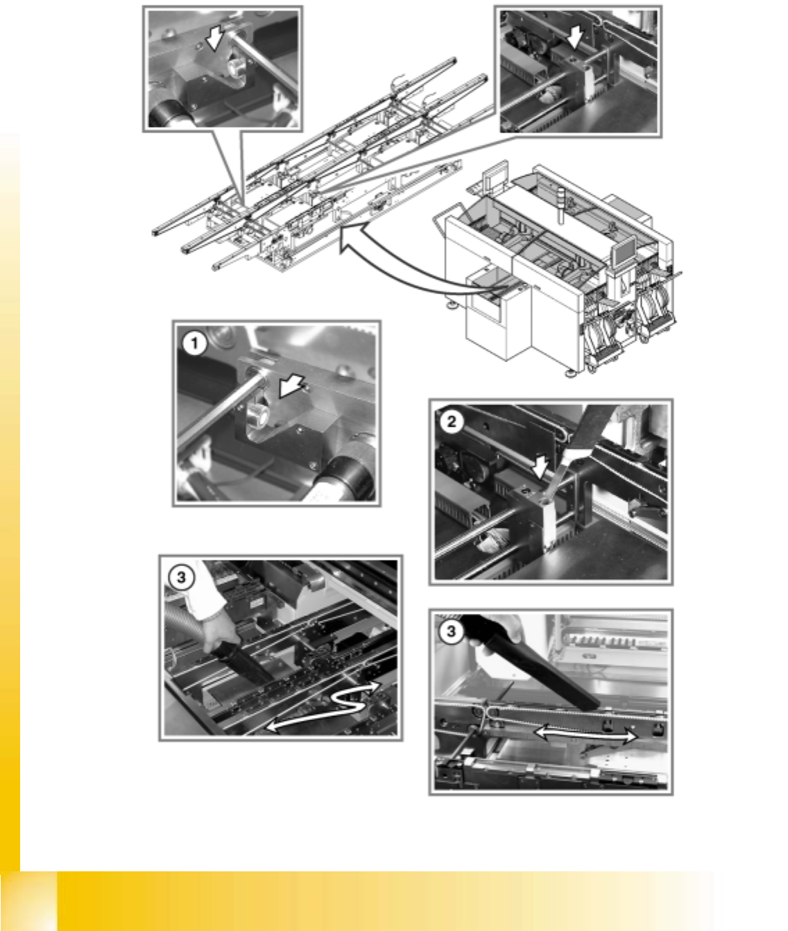 d Use the vacuum cleaner to remove any loose components from all around the PCB conveyor.