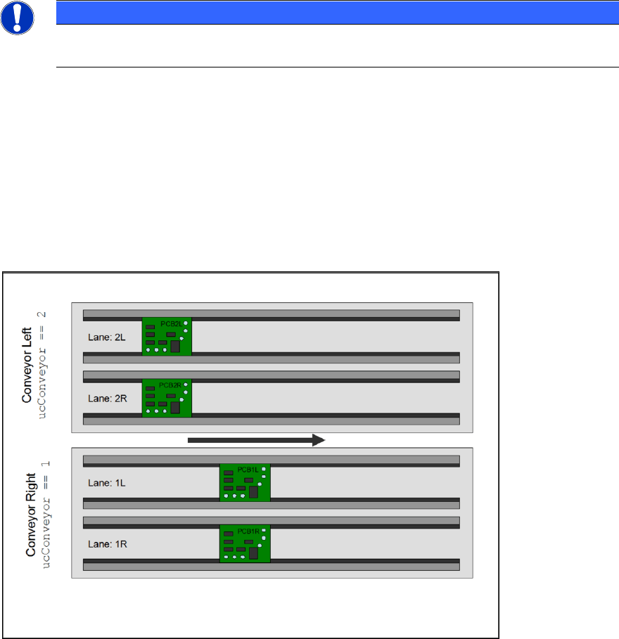 independently” is, that the two lanes of a conveyor always run in synchronous mode, i.e. PCBs on