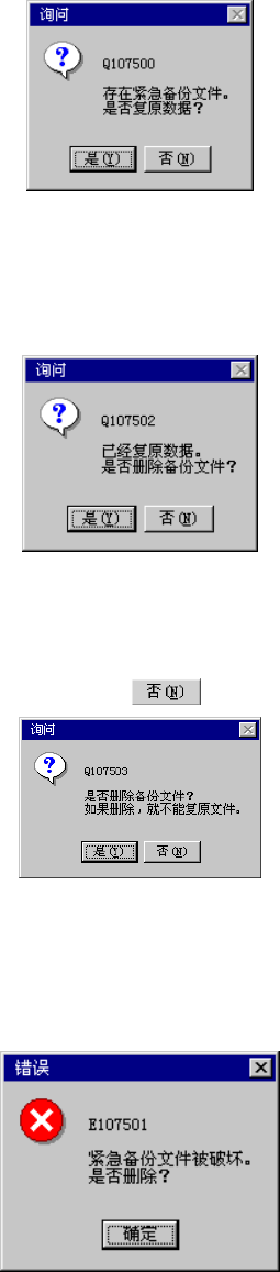 停电后重新启动时,系统将检查停电时的保存文件,若文件存在,则显示确认画面。