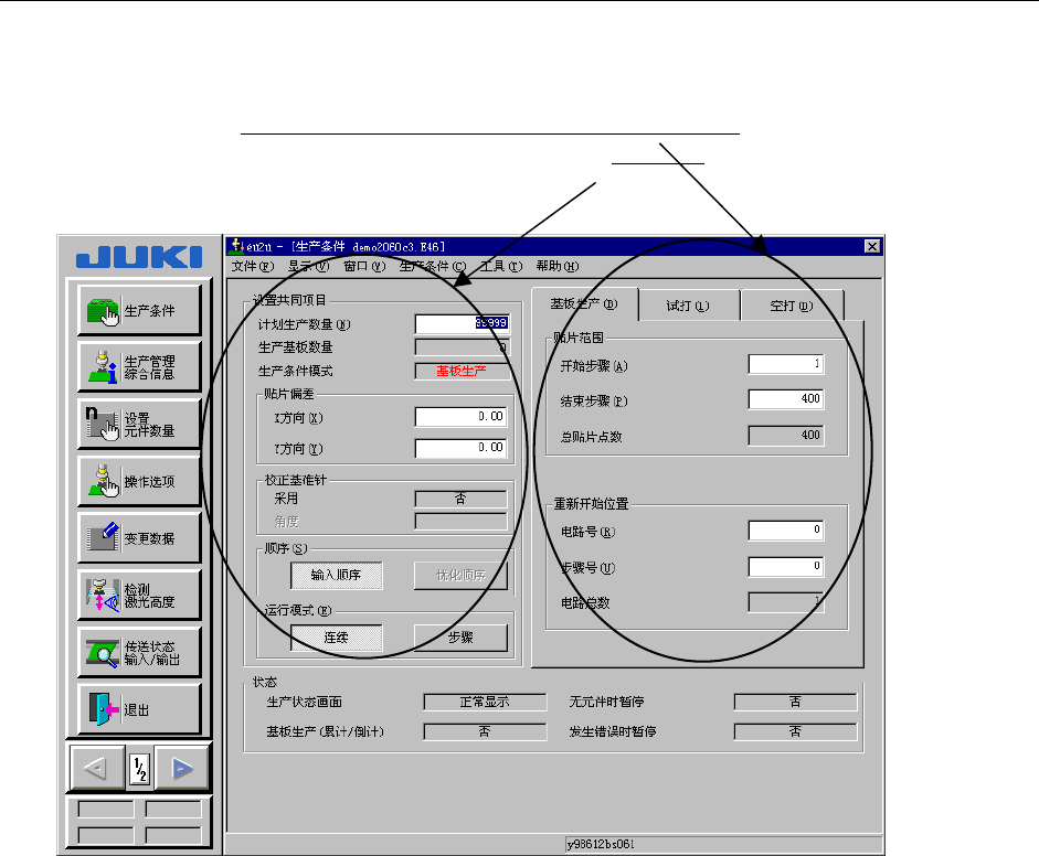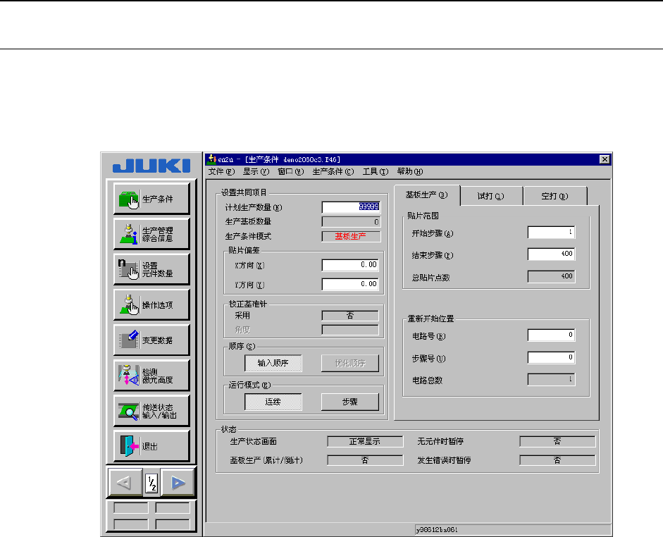 根据“基板生产”、“试打”、“空打”各种生产模式,分别设定各自的生产条件。