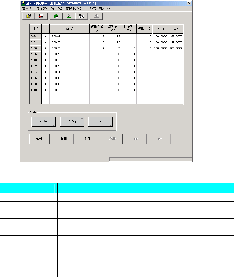 ② 总实际贴片率与总吸取率将在下一次生产时,以上一次的显示数据为基础进行追加收集。