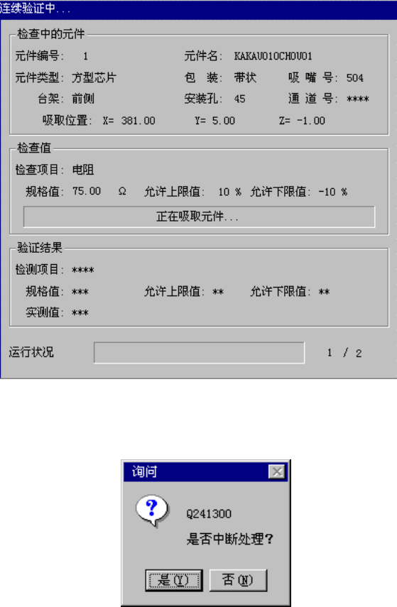 连续检查中将显示所检查元件的内容,并显示依次检查的进展情况和检查结果。