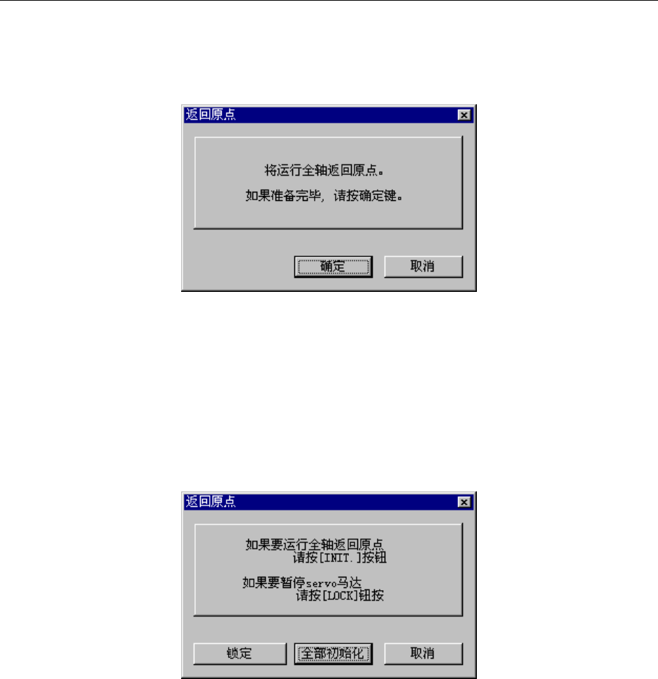 起动时,或在不能进行断点原点返回时,如果按下<原点>(ORIGIN)键,则显示如下的原点返