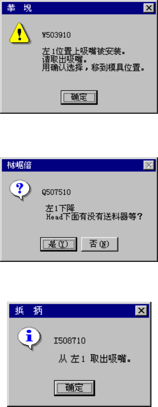 选择“确定”后,当其他贴片头有吸嘴安装错误时,请做同样的处理。