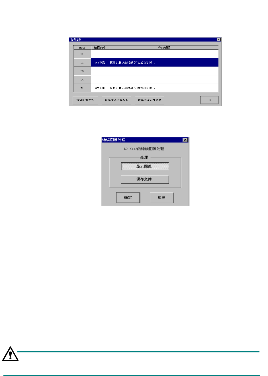 发生图像识别异常错误时,显示如下的错误详细信息对话框。此对话框上有[错误图像处理],
