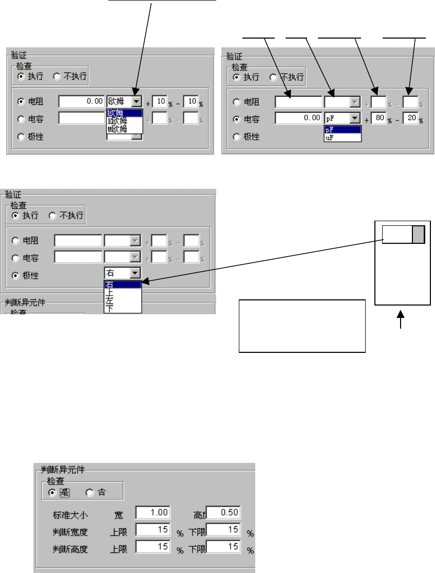 指定是否检查电阻值、电容器容量与极性,及其判定值。可对生产前与元件用完后的最初元