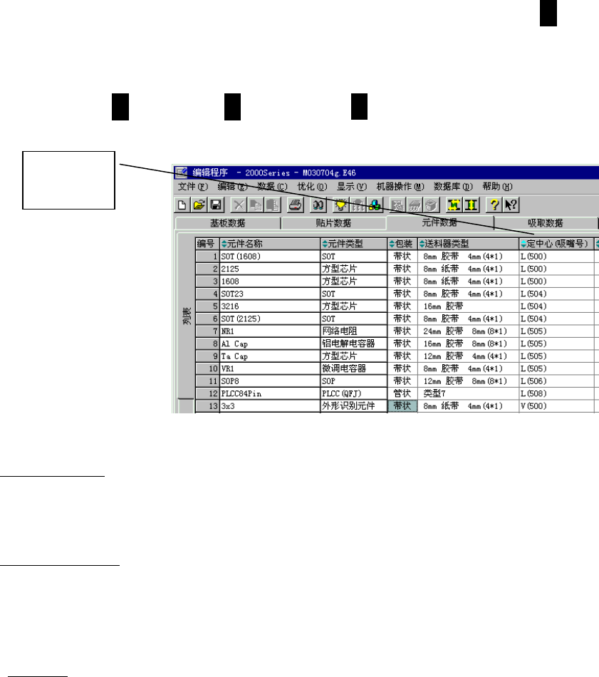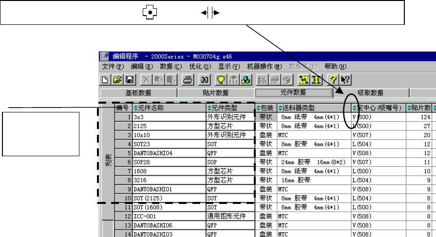 元件名称、包装状态、供给设备、供给(号码)均可做为排序键,使之显示出排序数据。