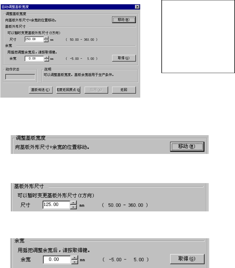 使用主体前面的手柄进行调整后,按下“取得”按钮,将当前的传送宽度与基板外形尺寸的差值作为