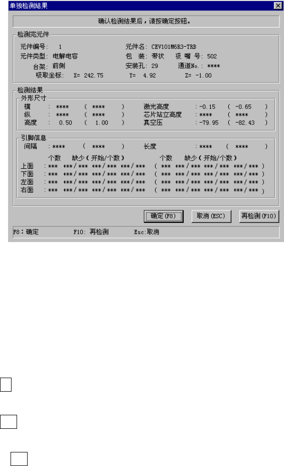 使检测结果生效,将结果值储存到元件数据中。然后返回原来的单独检测条件的设定画面。