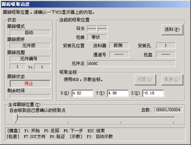 进行后,在各吸取位置(高度)的跟踪中显示如下的画面。