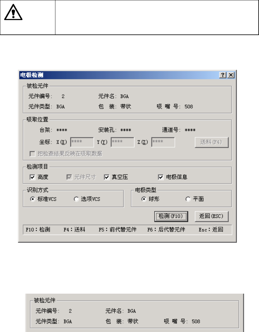 显示被检元件内容 / 吸取位置,并逐项显示运行中的处理内容。