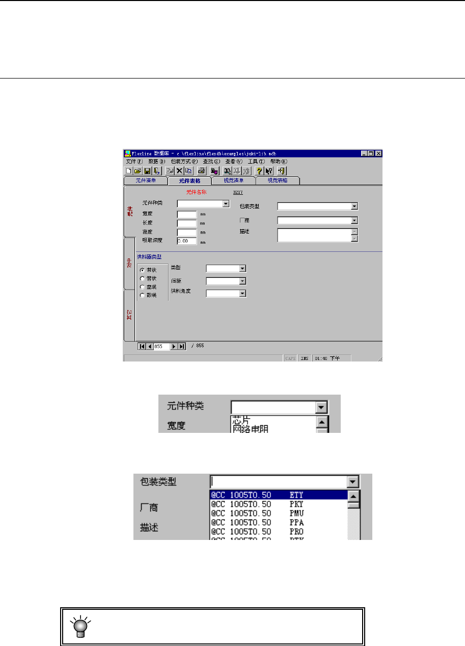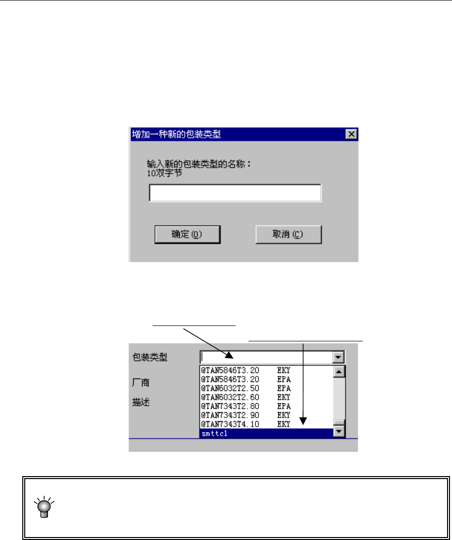 4) 从“包装类型”(包装代码)中选择相同外形的包装代码。