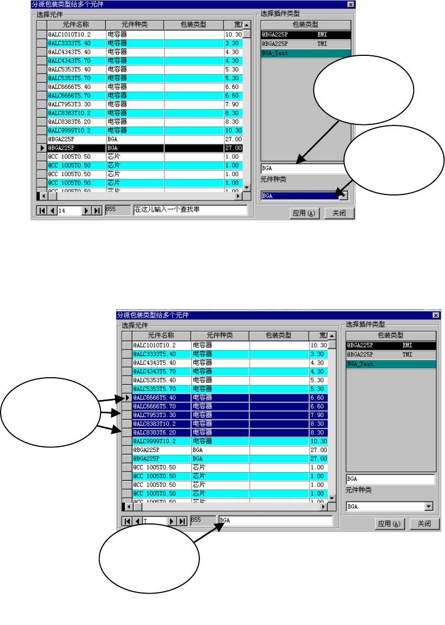 被选择,并在“包装代码一览”中着重显示。此外,也可只显示特定元件种类的包装代码。