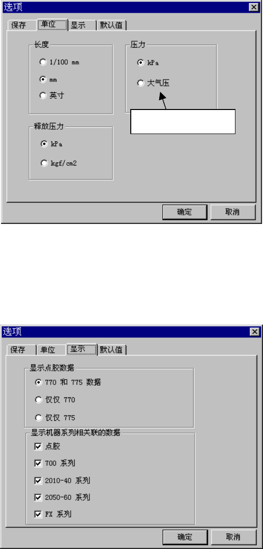 指定长度和压力的单位。在KE-2050R、2055R、2060R中没有使用“释放压力”。