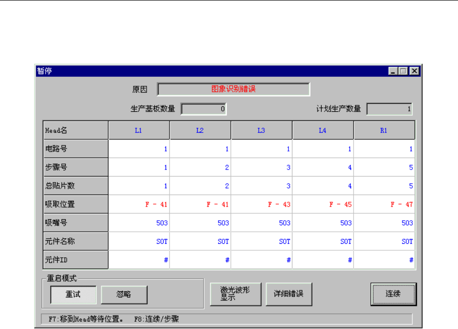 操作选项“发生错误时暂停”被设定的情况下,从如下暂停画面可以预显示/保存发生图像识别错误