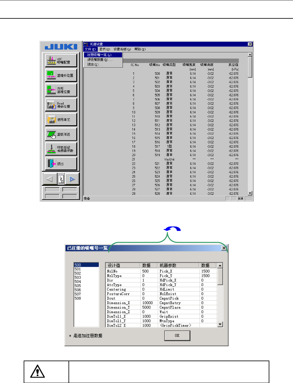 可在“已注册吸嘴编号一览(图8-3-2)”中确认已追加的吸嘴编号。