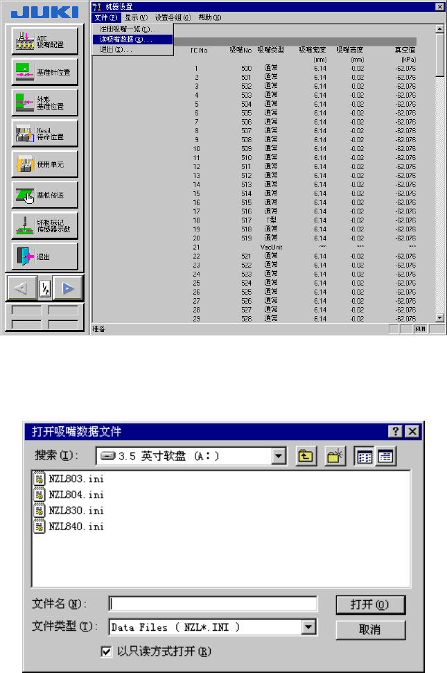 从菜单栏中选择“文件”/“读吸嘴数据”,则显示“打开吸嘴数据文件”画面。