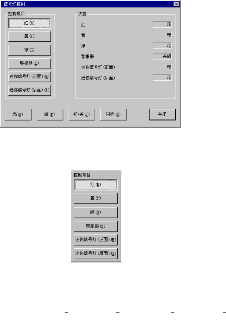 从菜单栏中选择“控制”/“其他”/“信号灯控制(S)”,则显示如下的信号灯控制画面。