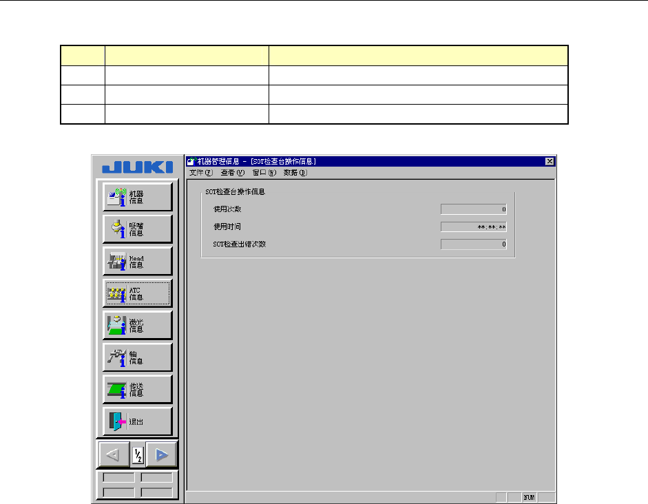 第 2 部 功能详细篇 第 10 章 设备运行信息 10-19 10-5-7 共面检测操作信息 ( 可选项,仅限于 KE-2055R、2060R ) 从菜单栏中选择“窗口(W)”/“图像”/“共面检测操作信息”,则显示图10-5-7-1。 No. 项目 内容 1 使用次数 使用共面检测的总次数。 2 使用时间 使用共面检测的总时间。 3 共面检测错误次数 发生共面检测错误的总次数。 图 10-5-7-1 共面检测操作信息