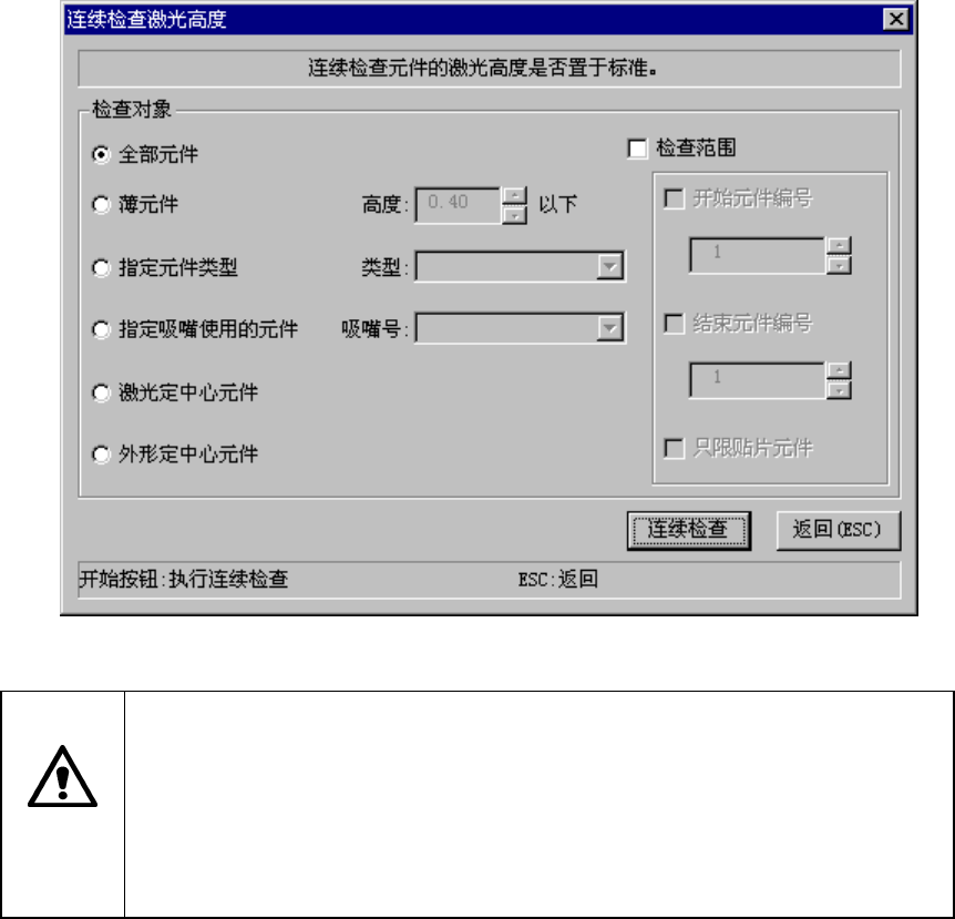 连续检查中显示进行连续检查的元件内容/吸取位置/激光高度,显示依次检查的处理内容。