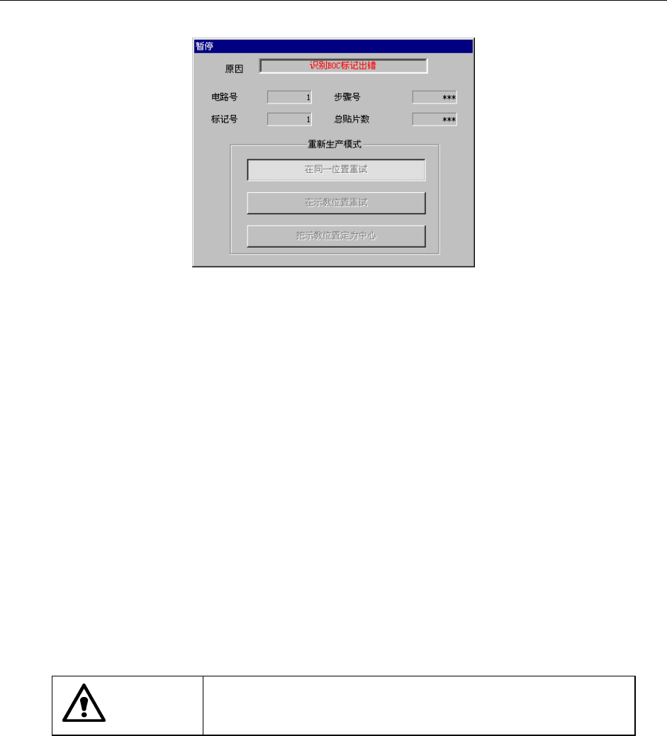 在BOC标记、区域坐标点的识别中发生识别错误,则显示如下的画面,并进入暂停状态。