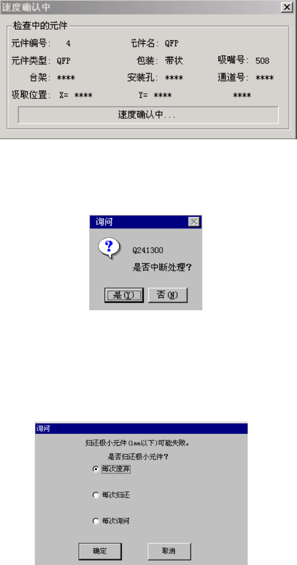 确认速度时出现下列对话框,显示正在确认速度的元件内容及吸取位置。逐项地实时显示
