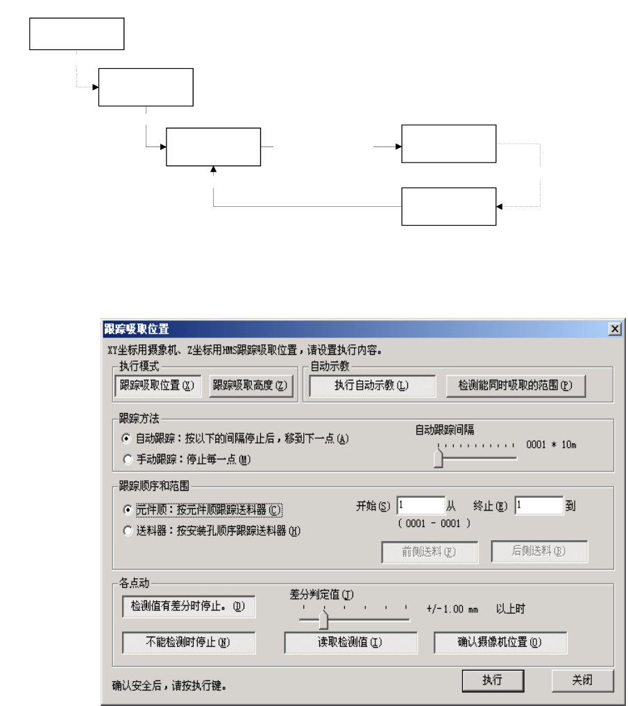 从菜单栏中选择“机器操作”/“确认”/“坐标类”/“跟踪吸取位置”,显示如下画面。