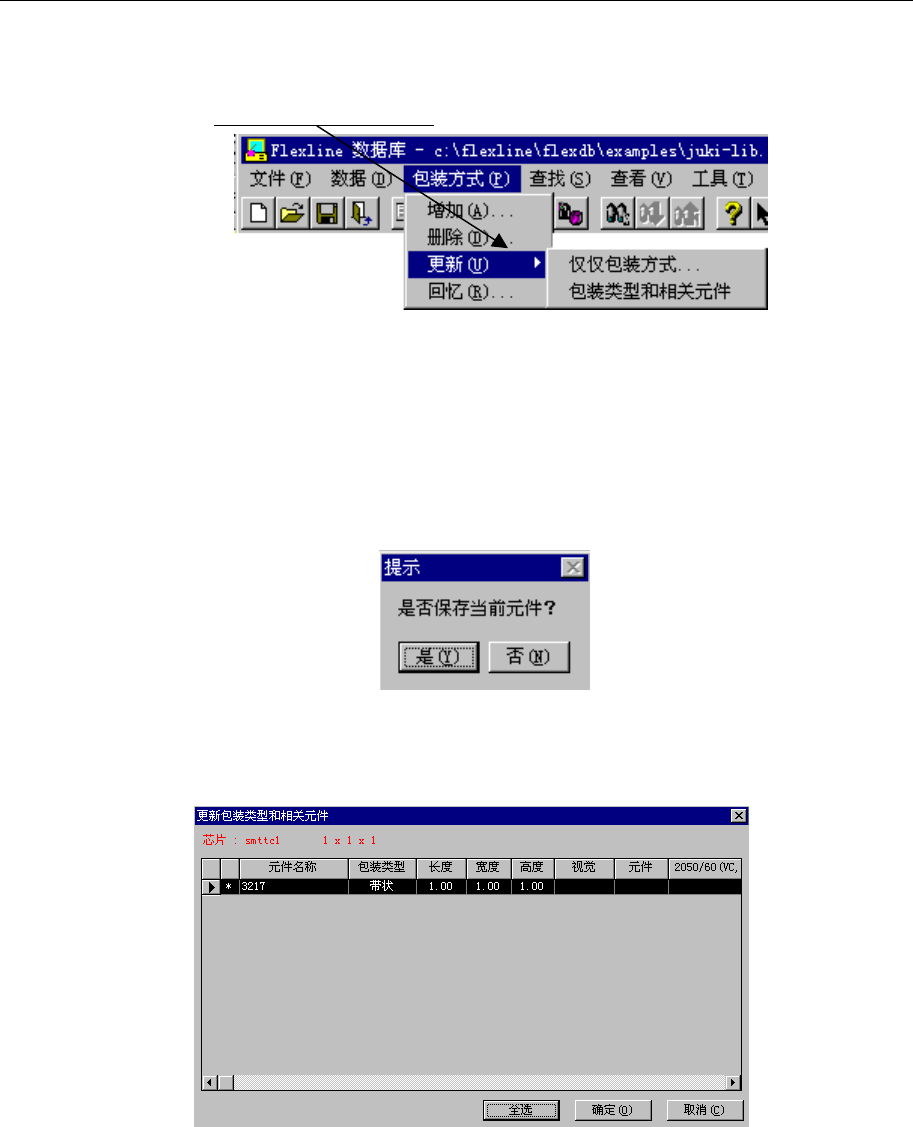 2) 选择“更新与包装代码相关的元件数据”时
