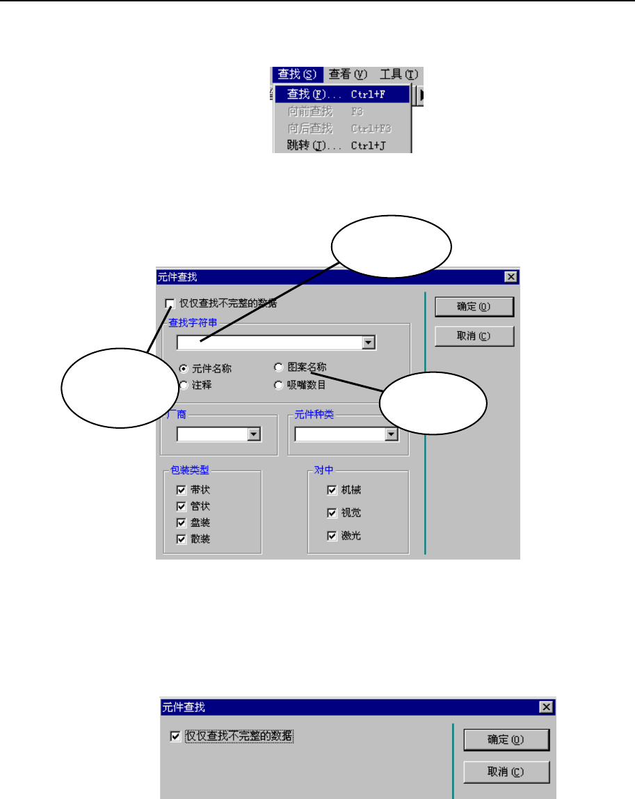 4) 查找未完成的元件数据时,请单击“仅仅查找不完整的数据”(查找未完成的数据)。显