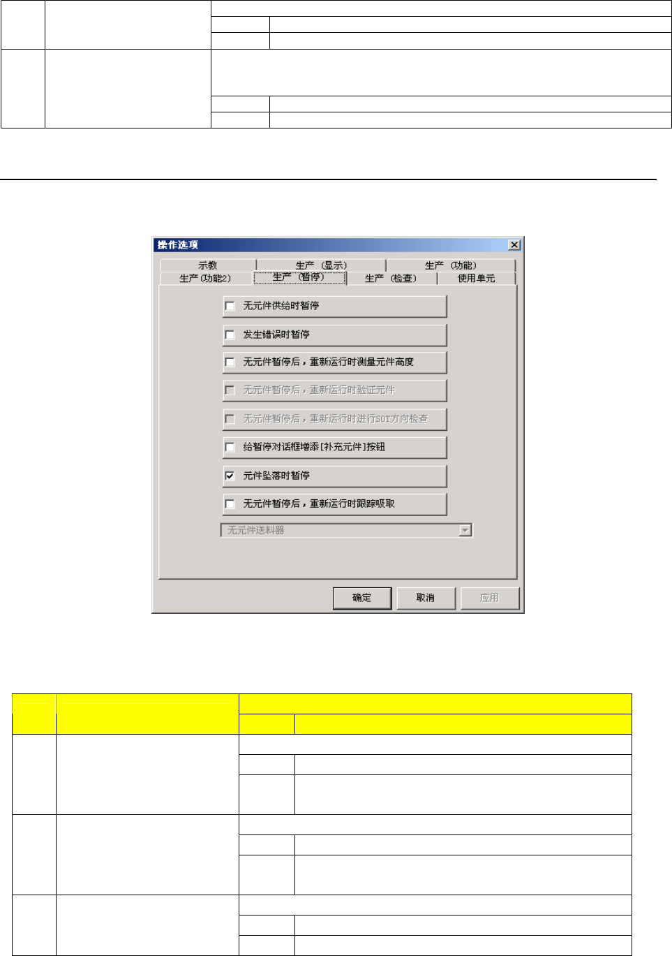 表 7-2-6 生产中暂停设定项目的细节和内容