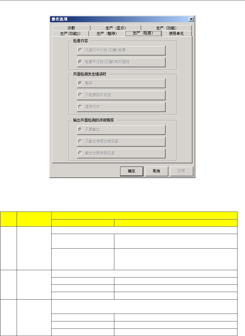 表 7-2-7 生产中检查选项设定项目的细节和内容