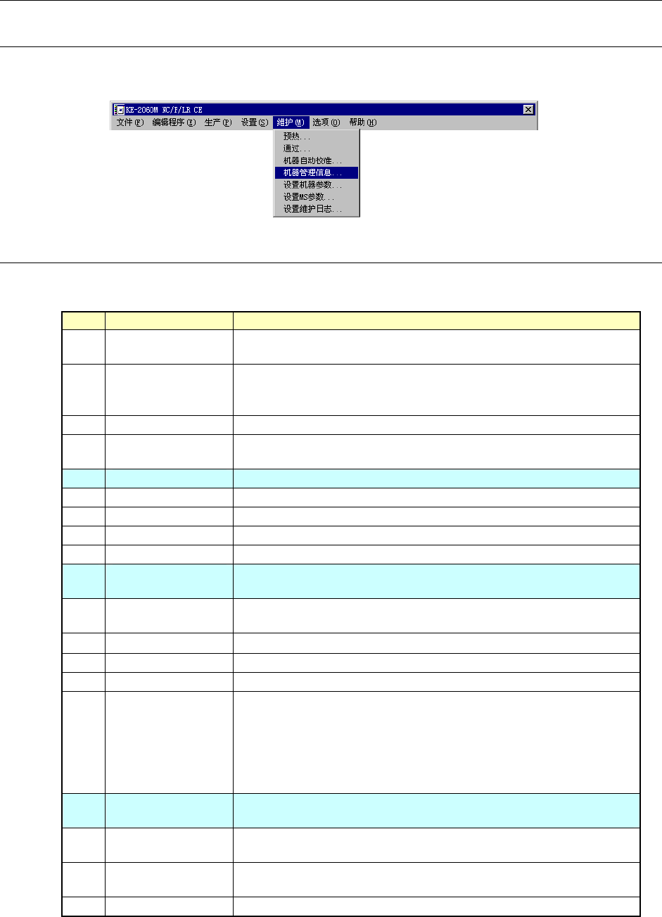 通过从主画面的菜单栏中选择“维护”/“机器管理信息”,可选择如下的运行信息。