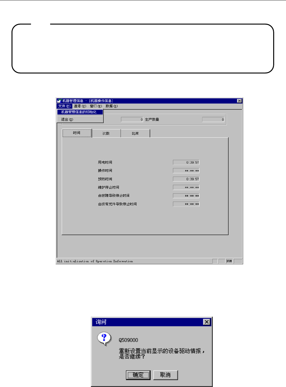 可以通过以下方法,在各项设备的作业信息画面上,对全部设备的作业运行数据进行“初始化”,实
