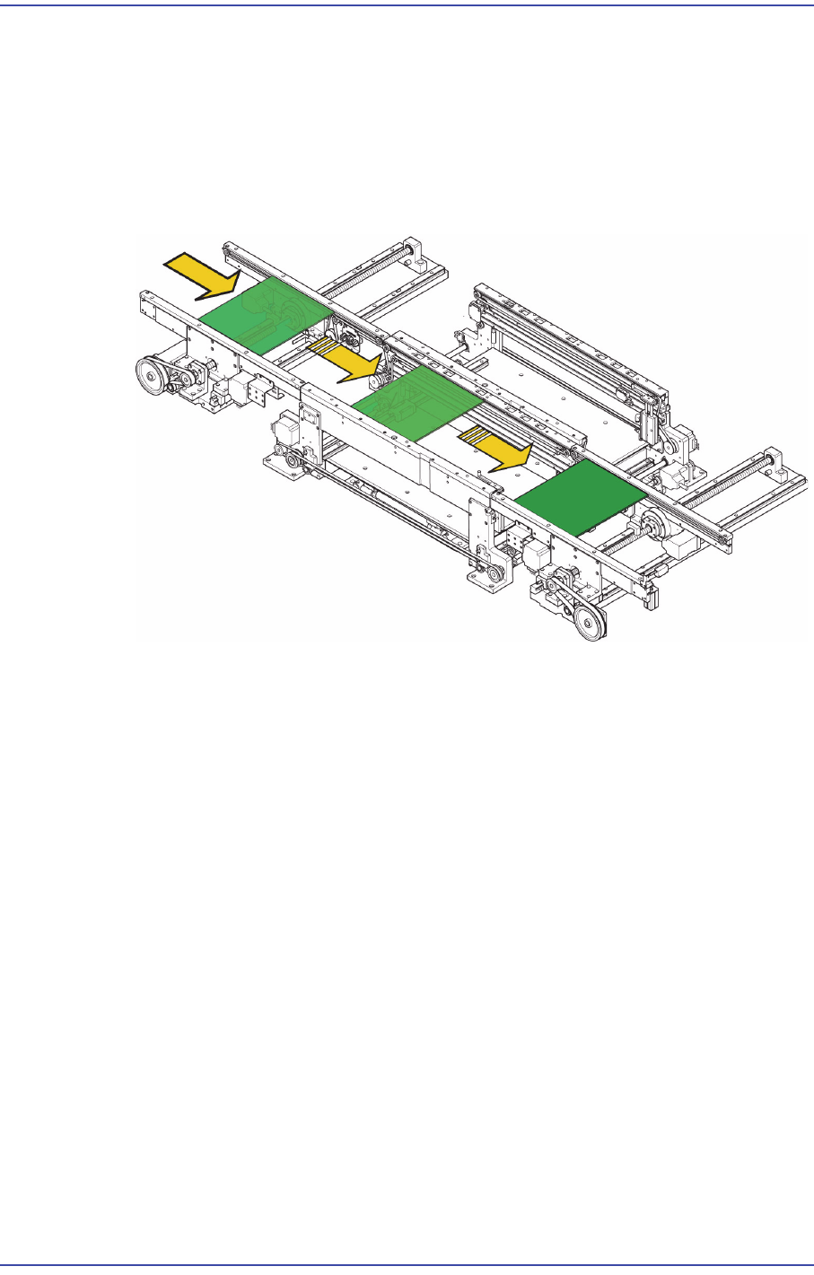에 맞추고 다음의 그림과 같이 PCB를 수동으로 밀면서 컨베이어를 정렬하십시