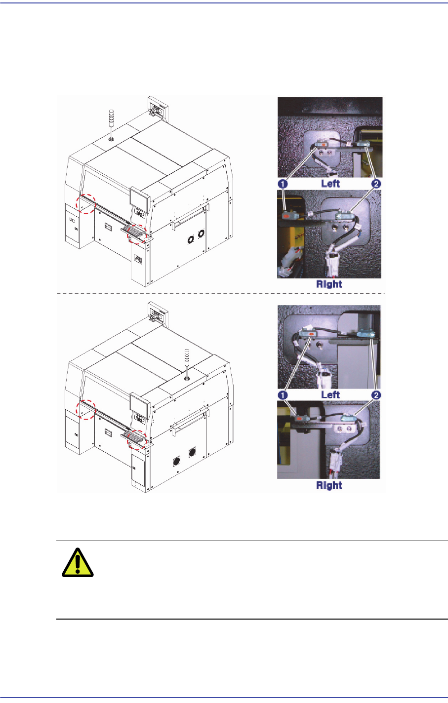 컨베이어의 PCB 반입/반출 경로 상에는 5 개의 기판 검출 센서가 설치되어 있습니