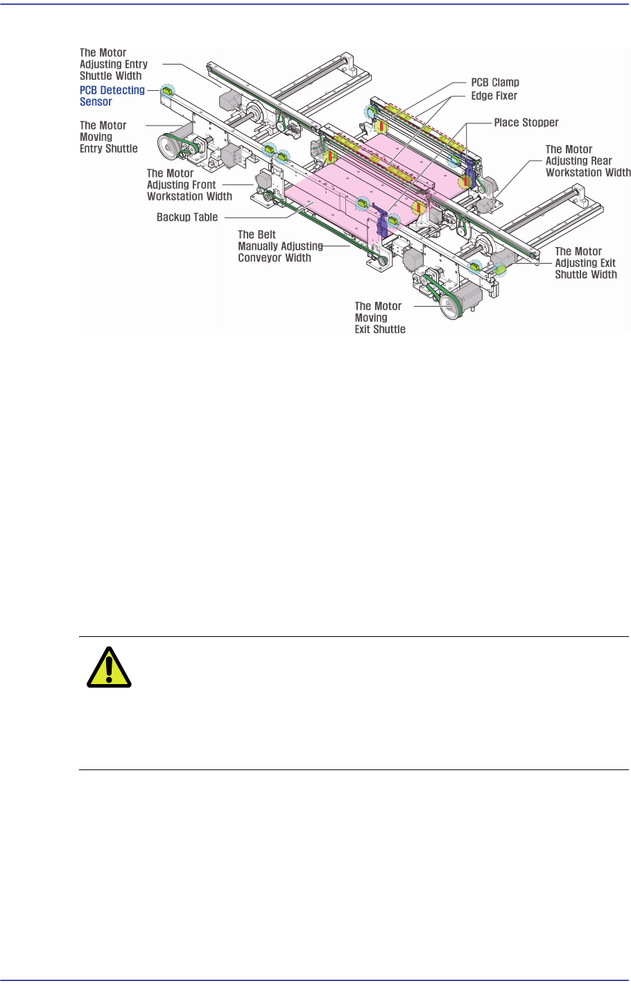 구동됩니다. Working Area에서 벨트를 이용하여 PCB 를 Clamping 할 수 있습니