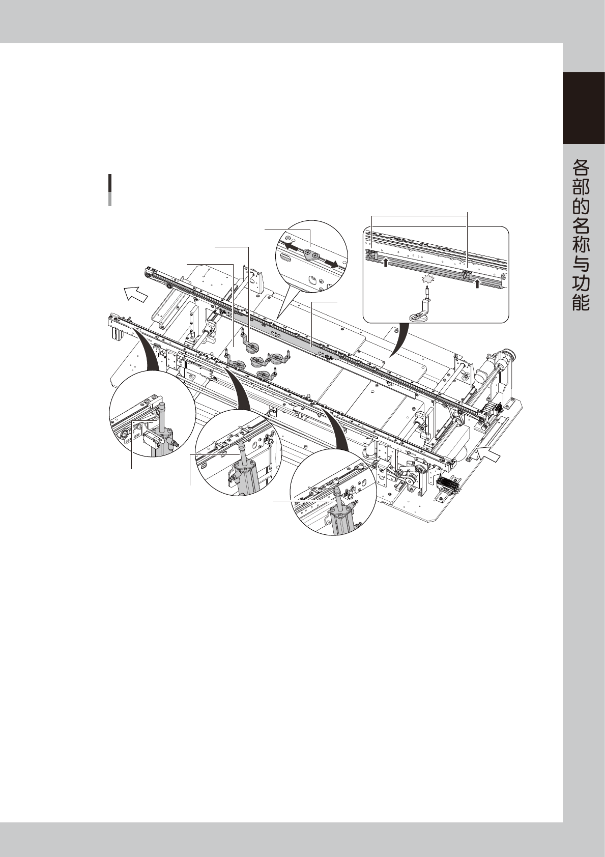 1-38 1 5. 传送部 5.1 传送装置 下面,介绍传送与固定基板用的传送装置。 ■ 双段输送台机型 传送装置 以右→左传送基板的机型为例 1 2 3 4 6 7 9 传板方向 8 5 (输送台 2) 5 (输送台 1 ) 25122-KMK-00 1. 待机挡板 贴装位置上已有基板时,被传送到传送装置内的基板在待机挡板位置处待机。 2. 输送台 1 的主挡板 输送台 1 贴装位置的基板挡板。传入传送装置内的基板碰到主挡板就会…