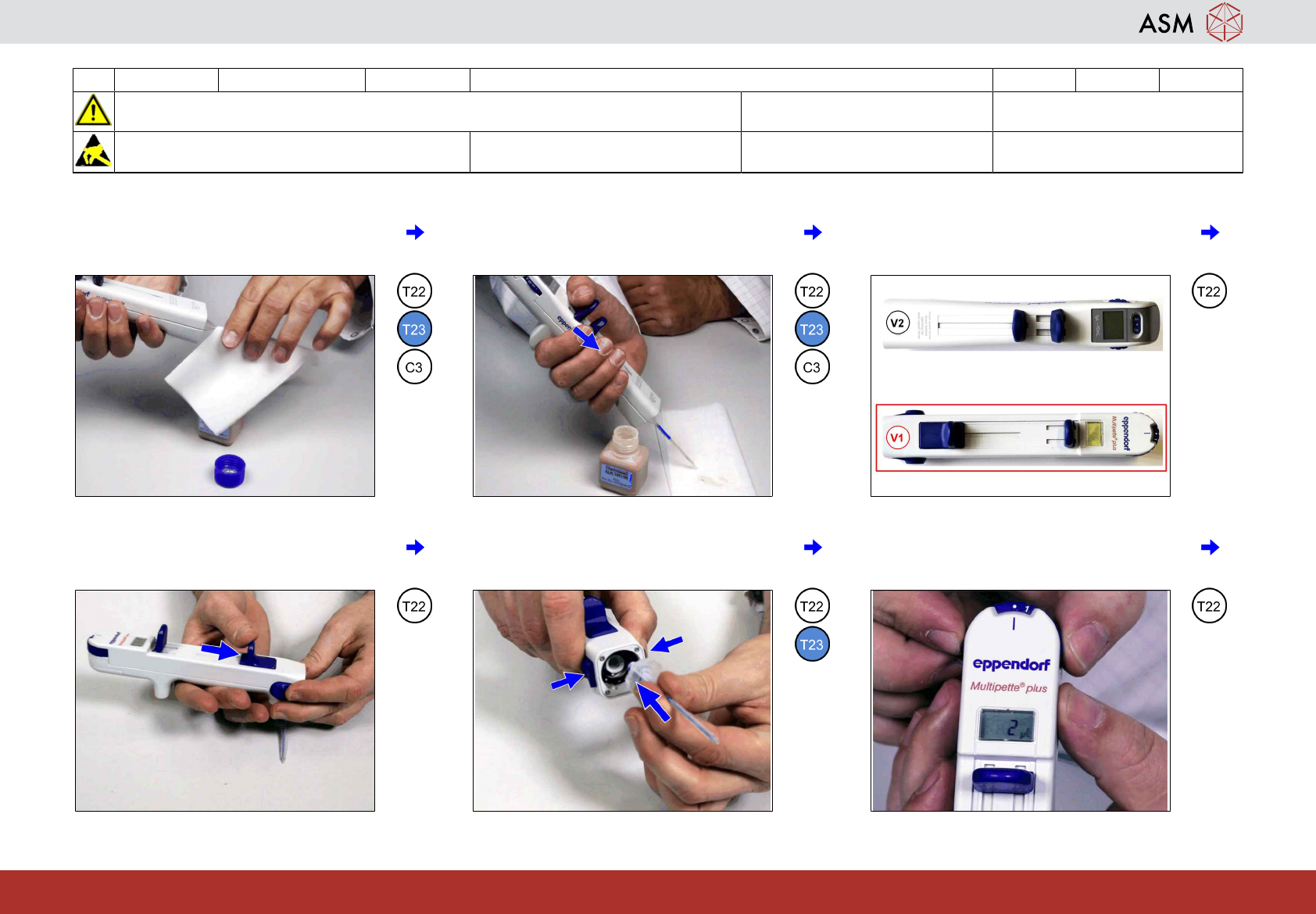 17 3-monatlich C&P20 P2/M3 Anhang: Multipette vorbereiten 5 min 1 / 3 Vor der Instandhaltung die Sicherheitshinweise in der Betriebsanleitung beachten Hinweis! EGB-Richtlinien beachten. Werkzeug: T22, T23 Verschleißt…