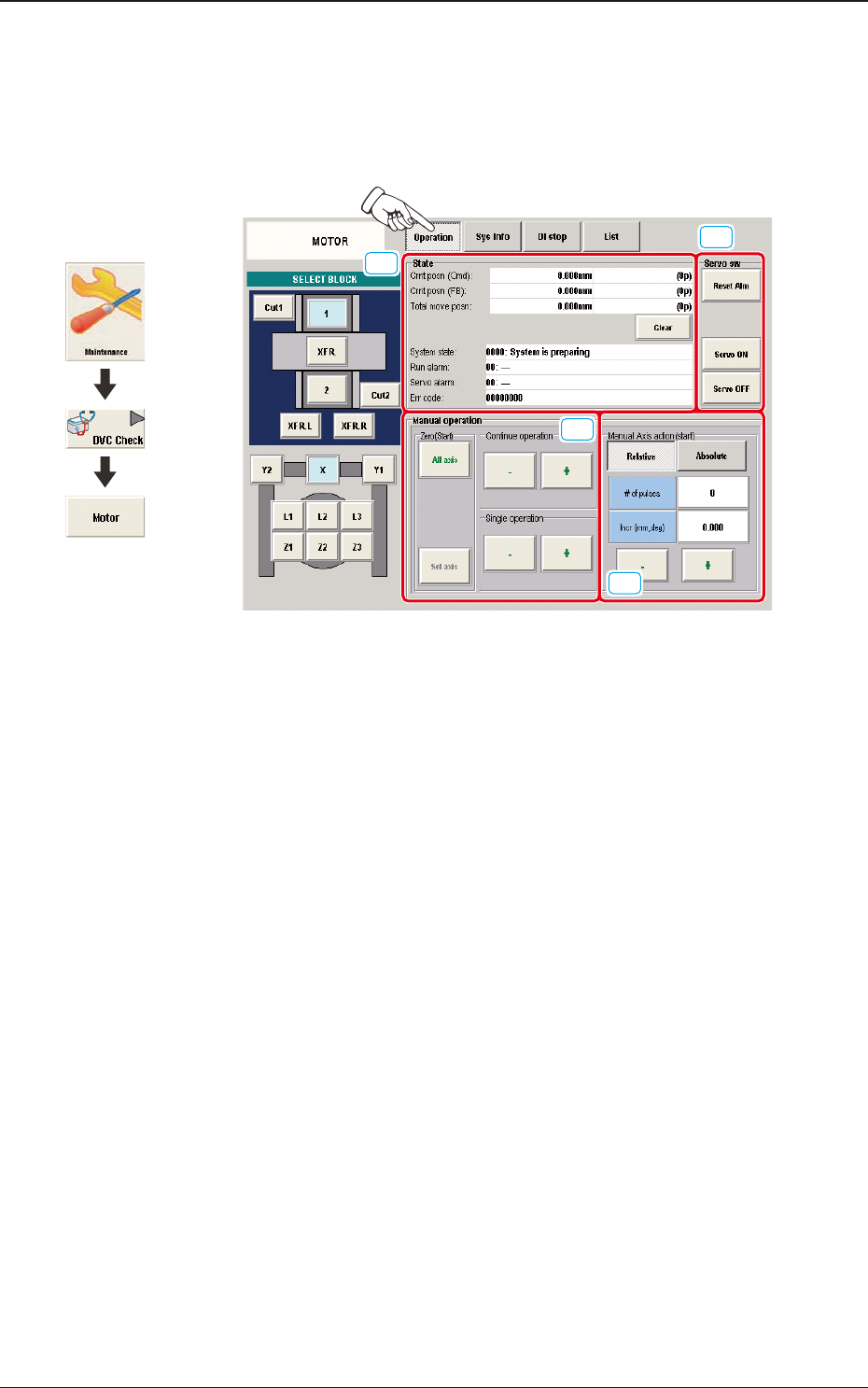 When the [Operation] button is pressed in the "MOTOR" window, the "Operation"